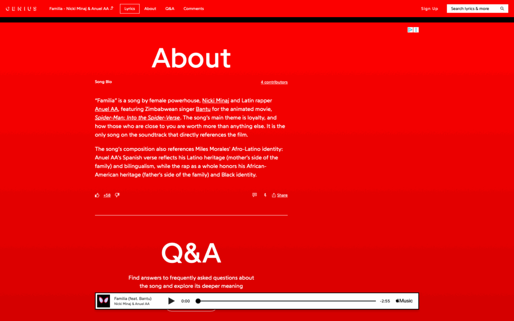 ArtBrooklynFamiliaFeature ArtistsGeniusMarvelMiles Morales Cool KidMovieNicki MinajNicki Minaj MulticulturalReign Queen Reign πRepublic RecordsSoundtrackSpider-Man: Into the Spider-Verse